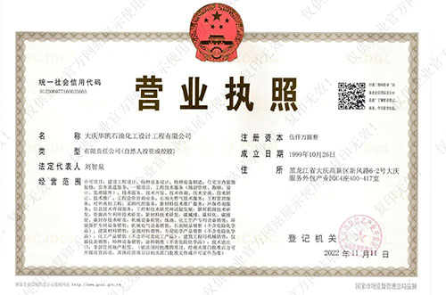 注冊了大慶華凱石油化工設(shè)計工程有限公司撫順設(shè)計院