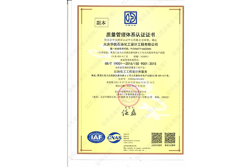 大慶華凱石油化工設(shè)計工程有限公司(以下簡稱“華凱公司”)成立于1996年,是大慶開發(fā)區(qū)高新技術(shù)企業(yè),專注于石油化工工程設(shè)計及技術(shù)服務(wù);自成立以來先后成為“中國石油和化工勘察設(shè)計協(xié)會會員單位”、“中國石油、中國石化工程設(shè)計院協(xié)會成員單位”及“中國勘察設(shè)計協(xié)會民營設(shè)計企業(yè)分會副會長單位”。